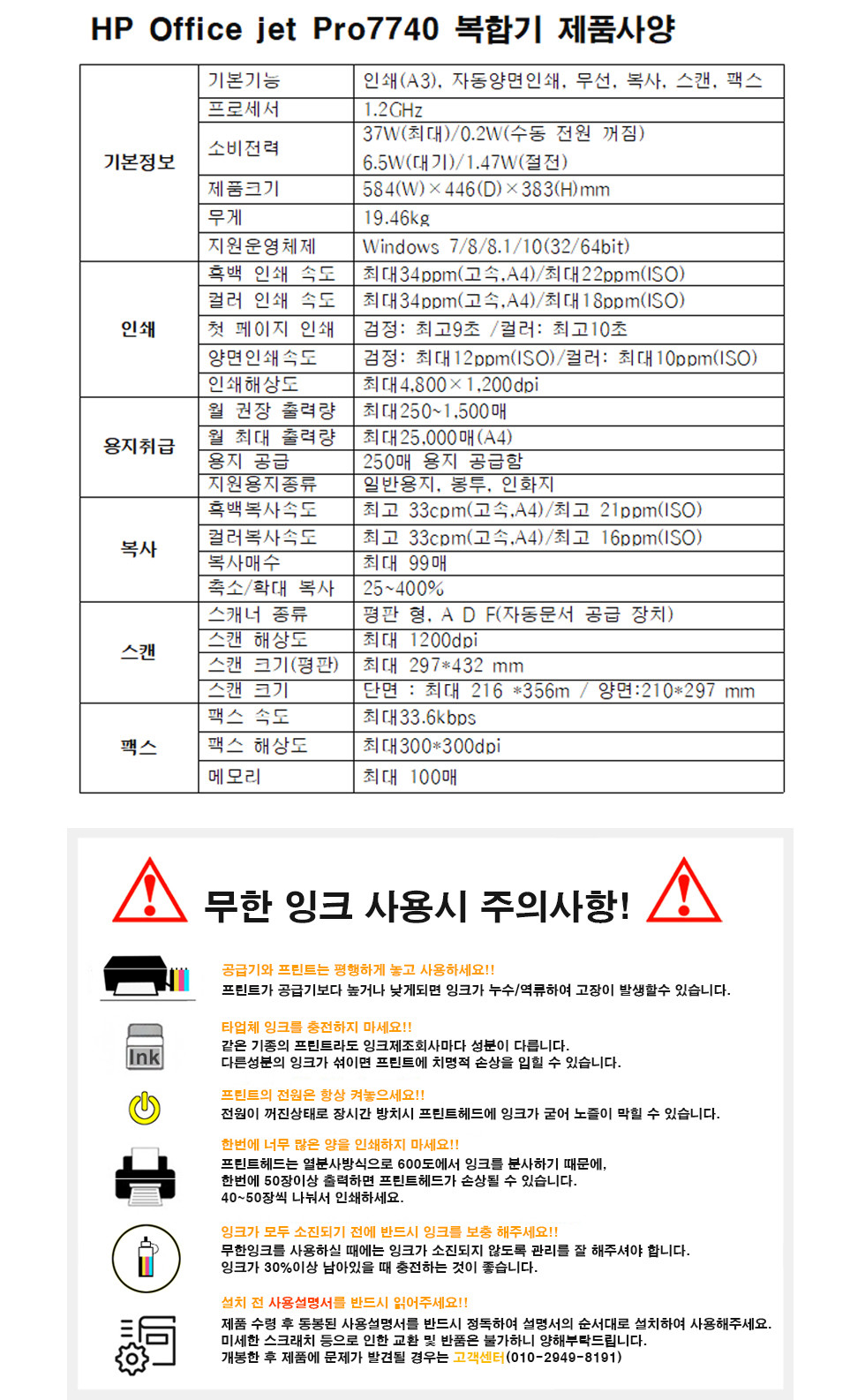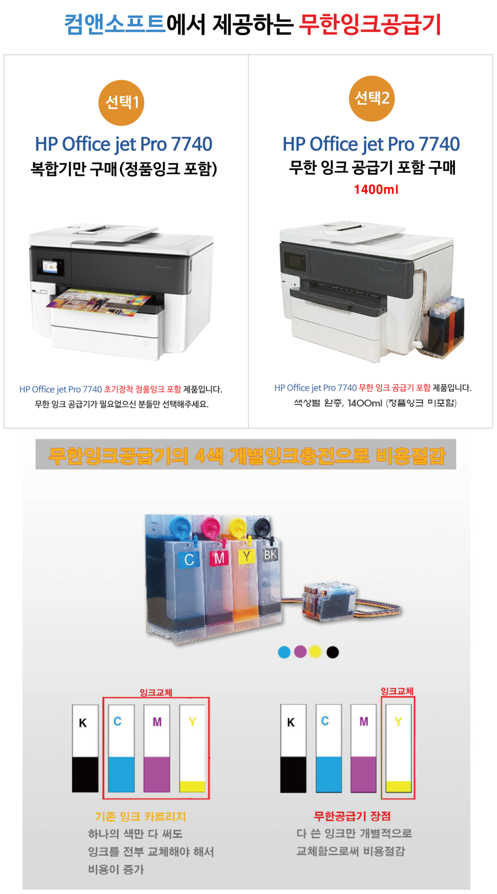 선택2. HP 7740(수입정품) + 무한잉크공급기 1400ml