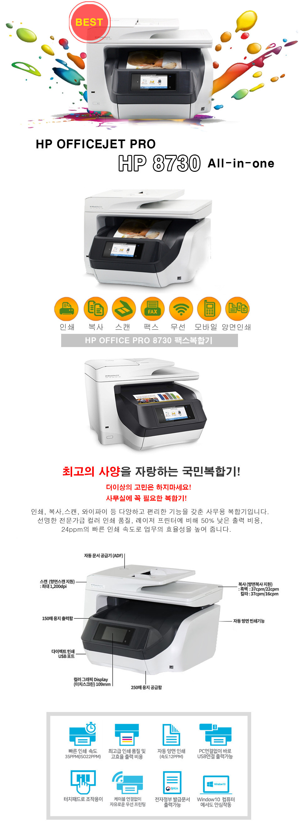 인쇄/복사/스캔/무선 등 다양하고 편리한 기능을 갖춘 사무용 복합기입니다.